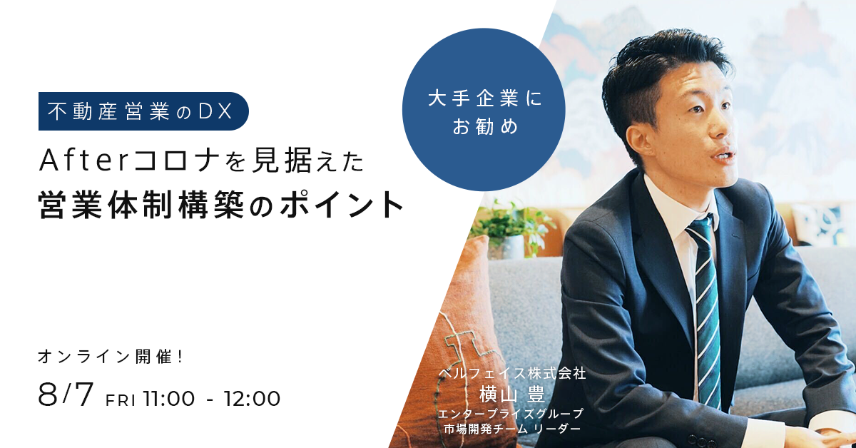 今回は2020年8月7日(金)に開催された「【不動産営業のDX】Afterコロナを見据えた営業体制構築のポイント」のレポートをお届けします!