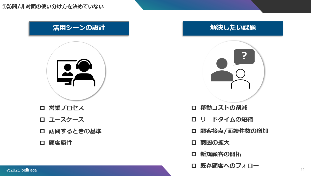 またシーンの設計では、非対面営業の導入目的を設定し、そこから逆算して考えるのが鉄則だ。