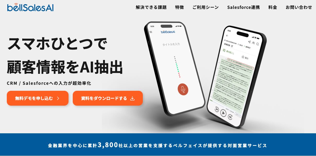 bellSalesAI は、スマートフォンで録音した商談内容から、Salesforce に入力すべき情報を自動抽出し、CRM への入力をサポートする AI ツールです。 これにより、営業担当者は、これまで時間のかかっていた入力作業から解放され、顧客とのコミュニケーションや提案活動などの、より重要な業務に集中することができます。詳しい紹介はこちらからご覧ください。