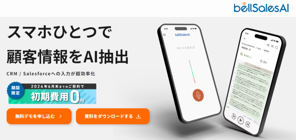そこでご紹介したいのが、ベルフェイスが新たに発表したbellSalesAIです。スマートフォンで録音した商談内容から、自社CRMに必要な情報を自動で抽出し、記録することができます。営業担当者の入力作業の負担を大幅に軽減できます。