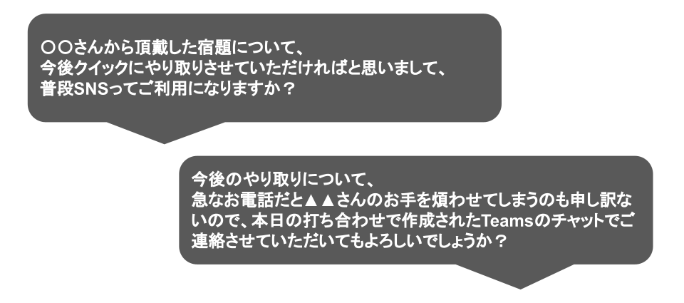 メールや電話だけでなく、SNSやTeamsのチャットなど、様々な手段でお客様と接点を持つことをおすすめします。特にSNSは、メールよりも開封率が高く、気軽にコミュニケーションが取れるため、関係構築に有効です。