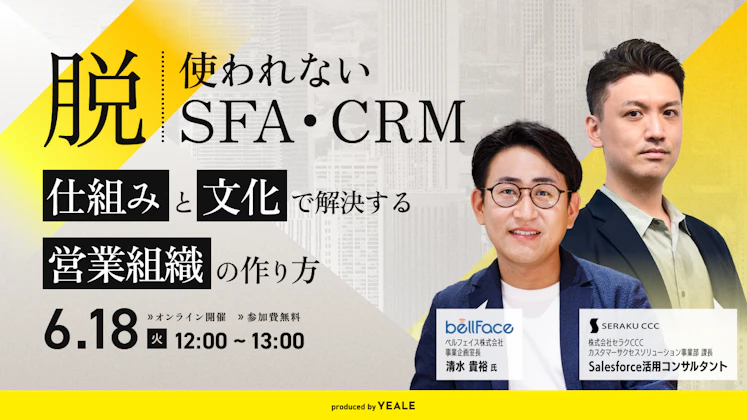 株式会社セラクCCCのSalesforce活用コンサルタントとbellFace株式会社の清水が、多くの企業を支援する中で培った経験をもとに、SFA・CRM活用成功のポイントを対談ウェビナーで語り尽くしました。今回はその内容を皆様にご紹介します!